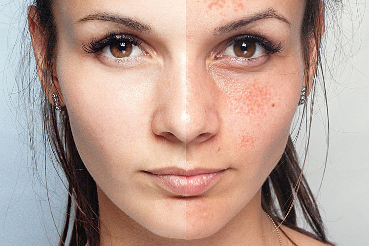 Из-за воздействия ультрафиолета страдают тонкие кровеносные сосуды, расположенные близко к поверхности, что может привести к покраснениям, а также характерному расширению сосудов, видимых на лице. Скорректировать этот процесс также поможет правильная диета. Пользу принесут уже упомянутые выше продукты с омега-3 жирными кислотами и цинком. Они, помимо прочего, оказывают противовоспалительное, восстанавливающее действие. Кроме того, актуальны богатые минералами спаржа, цветная капуста, сельдерей, мясо птицы, зеленая фасоль, цукини. А вот от многих специй на период обострения проблем лучше отказаться. Под запретом имбирь, тмин, гвоздика, корица и в особенности острый красный перец.