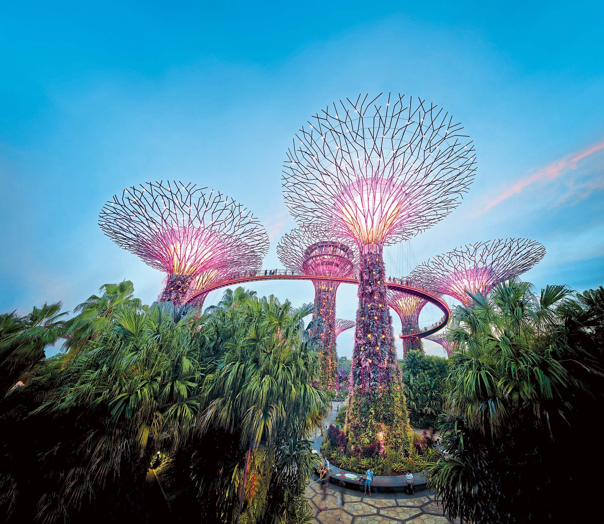 Футуристические небоскребы, построенные по законам фэншуй, отель, который похож на космический корабль, парящий в небе, водопады под стеклянными куполами, супердеревья из железа. «Растут» такие хайтековские конструкции в «Садах у залива» (Gardens by the Bay). Необыкновенные растения (некоторые деревья достигают в высоту 50 метров) сплошь увиты экзотическими папоротниками, виноградом, орхидеями, а также миллионом лампочек. Вечером здесь зажигается иллюминация и проходит светомузыкальное шоу. Но супердеревья созданы не только для красоты. Иначе это было бы слишком просто. Днем они накапливают солнечную энергию, которая потом используется для освещения. Кроме того, растения собирают дождевую воду и выполняют функцию охлаждения и вентиляции. Вот что такое настоящие экотехнологии будущего!