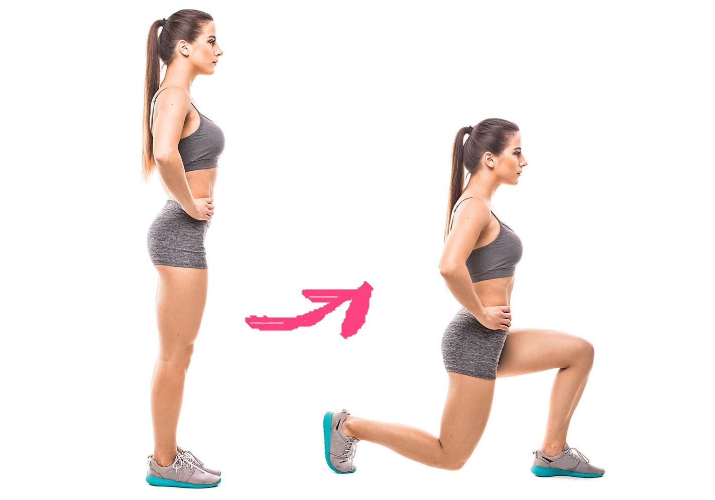 Следи, чтобы колено впередистоящей ноги находилось над пяткой, а стопа была прижата к полу.