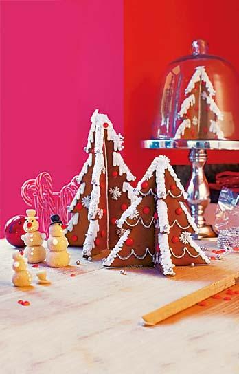 Пряничные елочки в белой глазури, печенье с орехами, штоллен и миндальные звездочки.