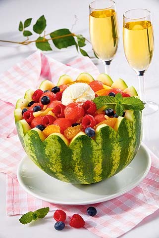 Готовим блюда с арбузами: коктейль по-восточному, гаспачо с ягодами, салат с сыром фета, десерт с пломбиром.