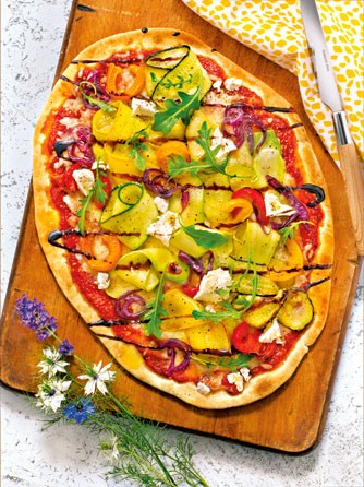 Блюдо недели – пицца с кабачками, цукини и сладким перцем. И все это – на тонкой лепешке из дрожжевого теста.
