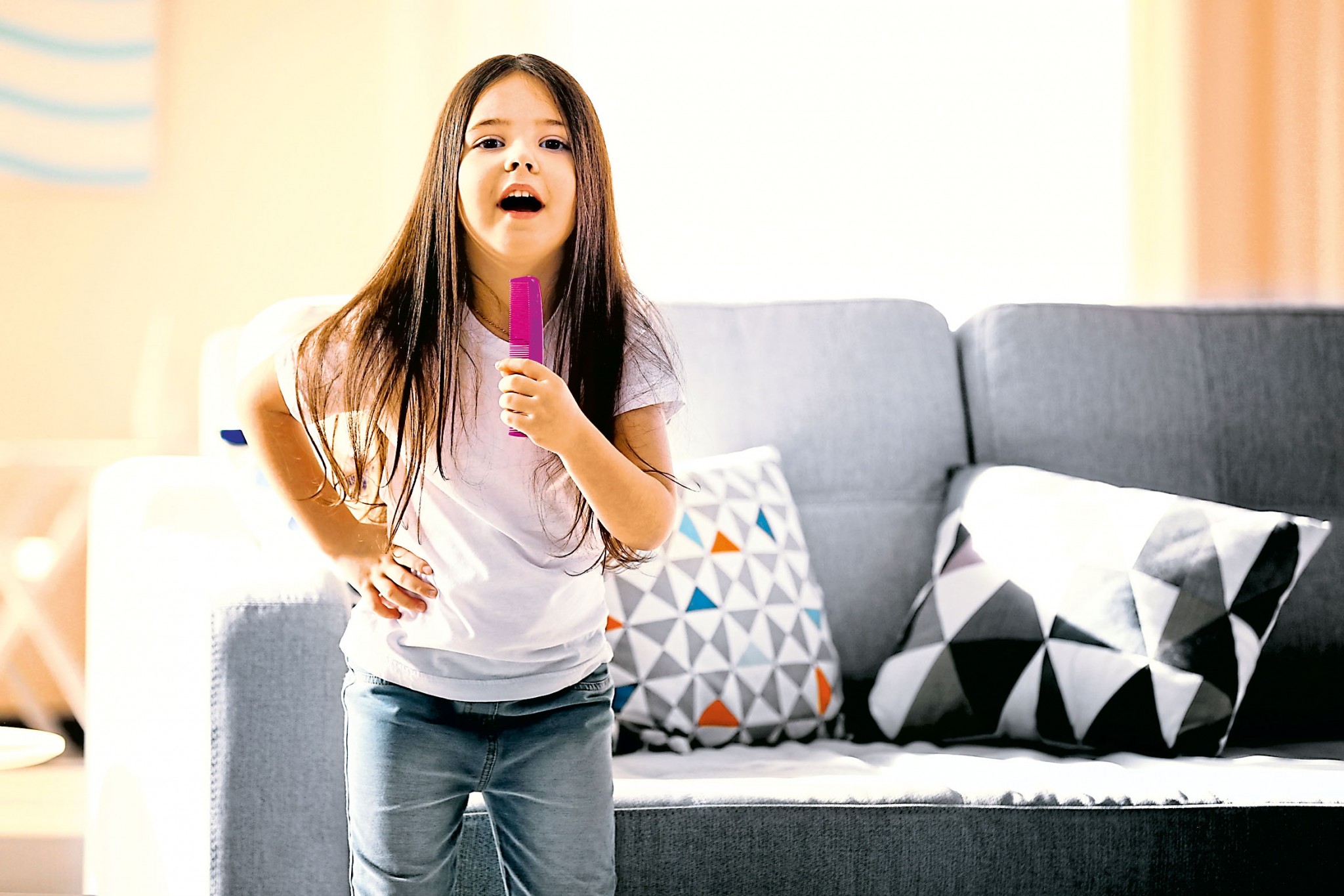 Думаешь, что встретить звезд шоу-бизнеса не так-то просто? Но посмотри, кто это поет перед зеркалом, вооружившись расческой вместо микрофона? Юная артистка! И пусть бурные овации пока звучат только в ее воображении – именно с мечты начинается путь к любой цели. Браво!