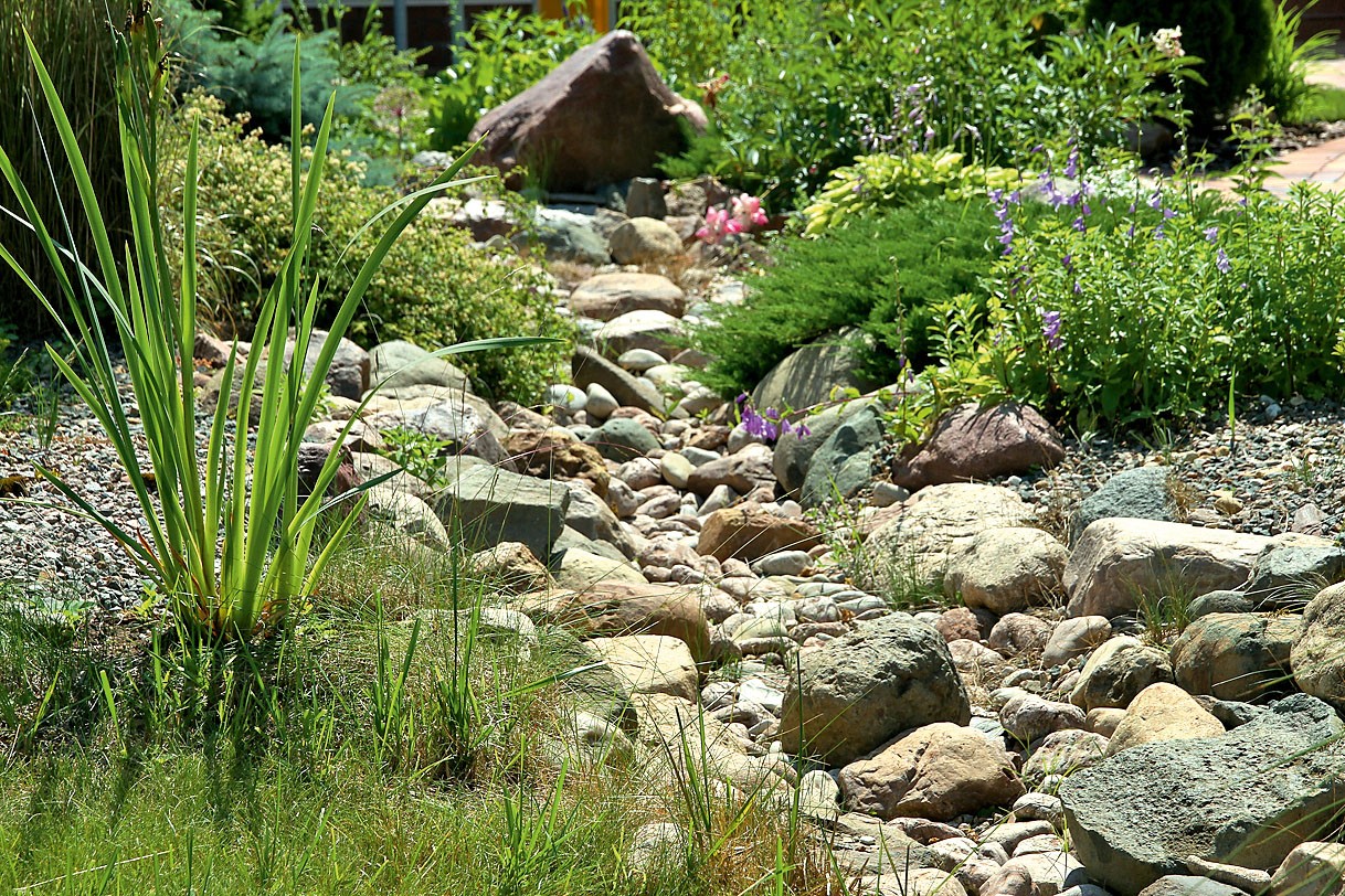 Очень интересный декоративный элемент сада, строительство которого потребует максимально творческого подхода. Хочешь попробовать? Рассказываем, как это сделать. Собери необходимое количество камней разного размера (проще всего за такими отправиться в гористую местность или к берегу реки). Далее, выбери наиболее удачное место на участке (лучше, чтобы ручей стекал с пригорка). Ну и самое интересное и одновременно сложное – сложи русло ручья из имеющегося материала, чередуя большие и маленькие камни. И самое последнее – не забывай подсаживать растения, похожие по структуре листа на растения, растущие вдоль берегов ручьев, рек и озер. Для этого идеально подойдут ирисы, лилейники, шаровидные ивы и злаковые растения. Совет: в истоке ручья можно положить кувшин с высаженными в него вьющимися растениями, имитирующими воду, а также, добавить несколько фигурок стрекоз или маленьких лягушат. И еще одна подсказка: с помощью сухого ручья можно задекорировать дождевой сток с крыши. В таком случае, во время дождя ручей будет настоящим горным бурным ручейком.