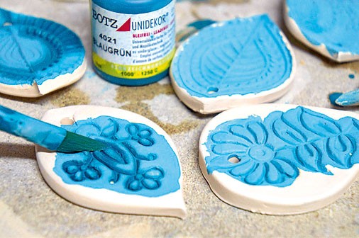 Пока глина не застыла сделай отверстия. А через 24 часа раскрась «листочки» цветными красками.