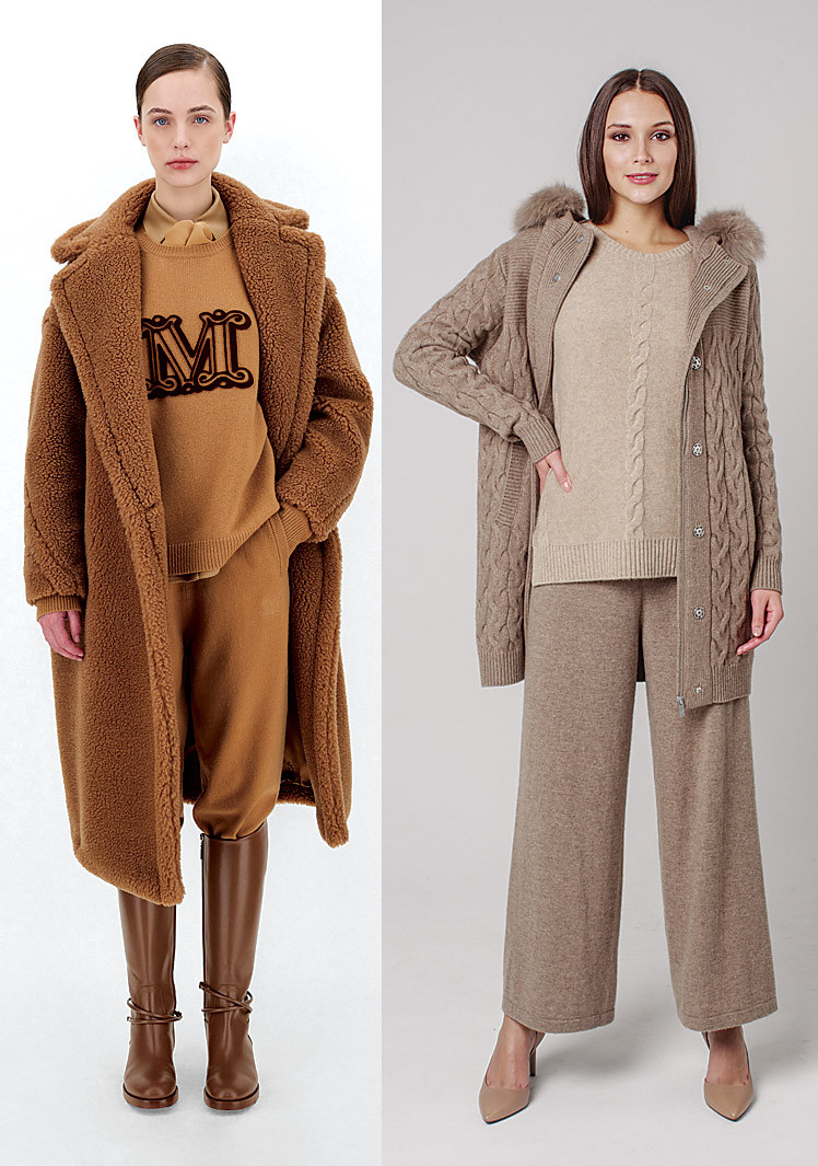 Кашемир – это классика, его носили еще наши бабушки, и будут носить наши внучки. Он довольно консервативен: немного меняются фасоны, чуть шире или чуть уже, в цветах разгул фантазии тоже не особо приветствуется. Поэтому бренды редко производят неоново-желтые или кислотно-зеленые вещи. Кашемир – про естественность. Поэтому марки в основном мягко миксуют оттенки, работая с теплой и холодной палитрой бежевого и серого. С черным и белым, кстати, довольно сложно, потому что они маркие и непрактичные.
