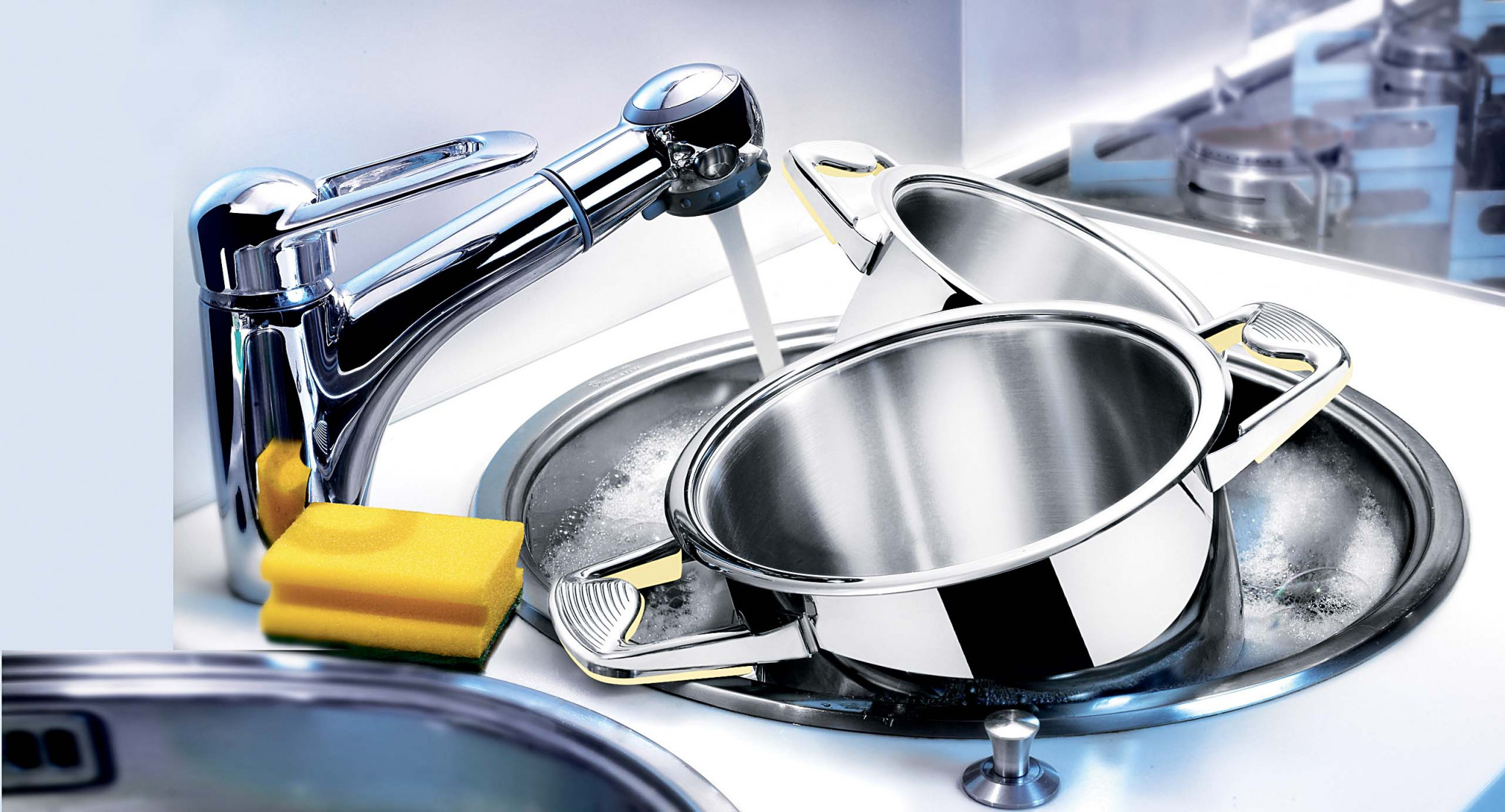 - После использования замачивай алюминиевую посуду в холодной воде и мой мягкой щеткой или губкой. Тереть проволочной мочалкой или жесткой щеткой алюминий нельзя!