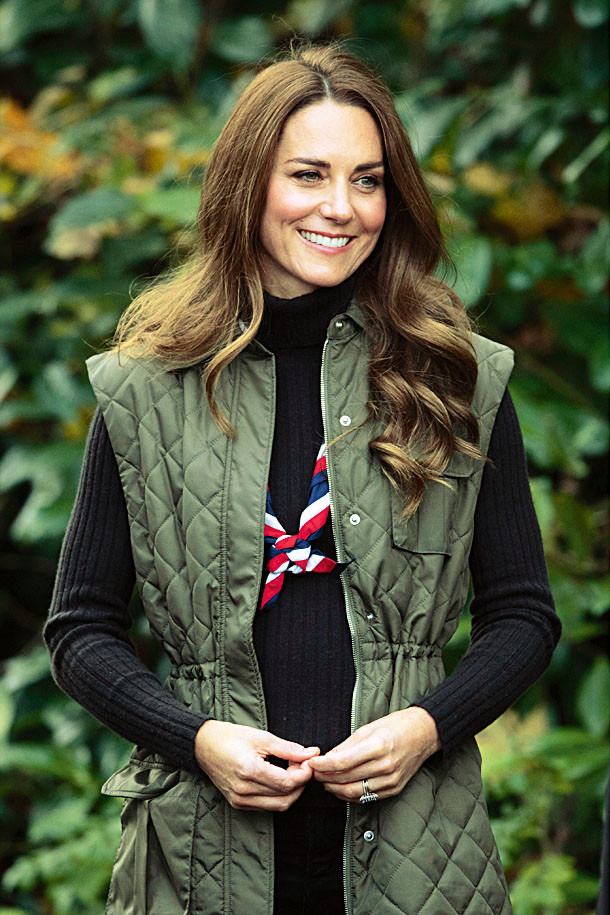 СТИЛЬ КАНТРИ. Для поездок на природу Кейт выбирает практичные комплекты, часто дополняя их джинсами скини, что нетипично для королевских особ. Зато на ней можно увидеть стеганные жилеты и куртки, которые есть и в гардеробе королевы.