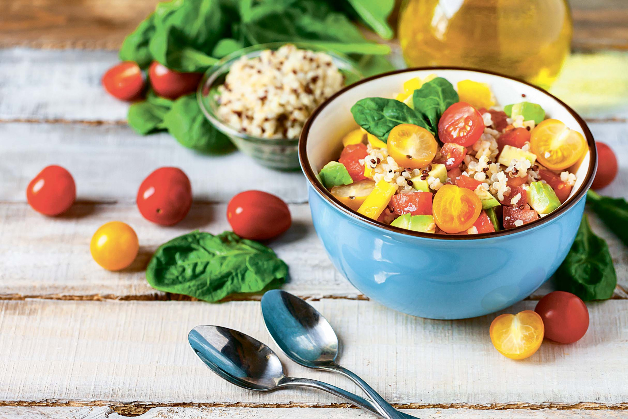 - Жиры: на выбор 2 ч. л. оливкового масла или соуса песто; 1/4 авокадо или 2 ст. л. орехов (семечек), 1 ст. л. ореховой пасты или 10 оливок.