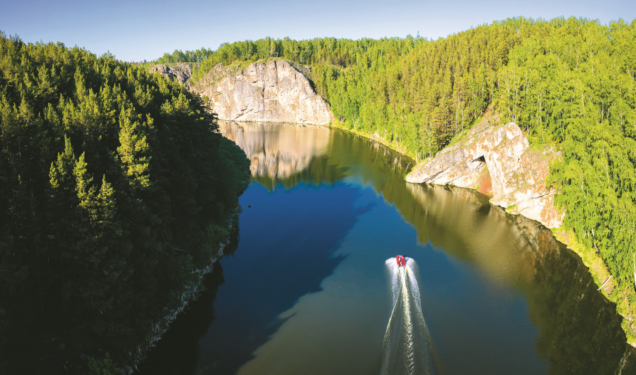 Если сплавляться вверх по реке Реж, можно добраться до скалы Шайтан-камень, на которой древние люди изображали сцены охоты на животных. В рисунки метали стрелы – подобный обряд должен был принести удачу. Кстати, подобный скелетный стиль изображений прослеживается и в наскальной живописи в канадском парке Бон Эхо.