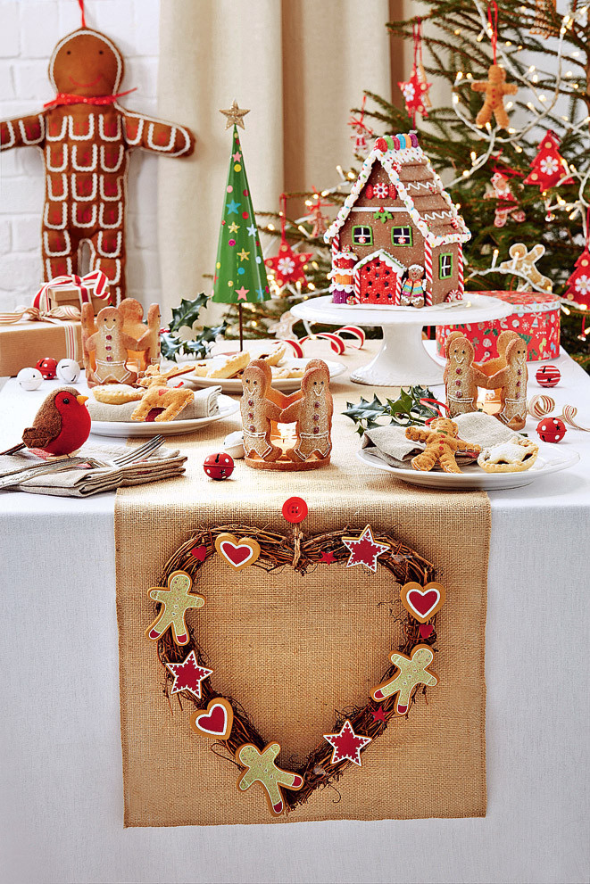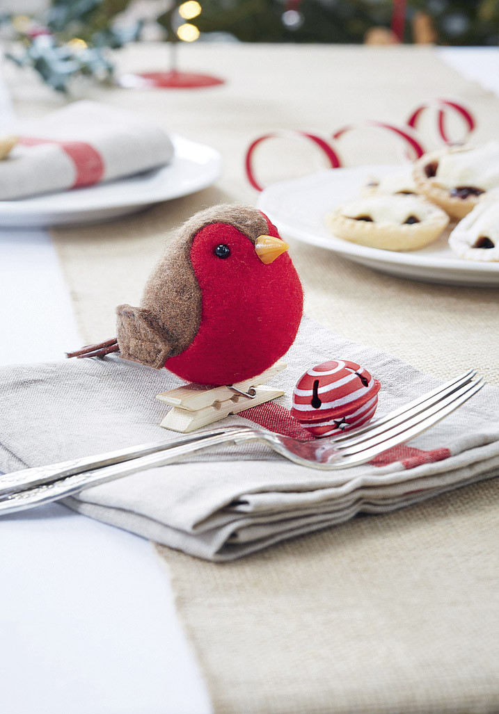 Ничто так не создает новогоднюю атмосферу, как аромат свежеиспеченных пряников. Сделай их основной «вкусной» темой в декоре стола. В дополнение можно усадить на салфетки фетровых снегирей на прищепке.