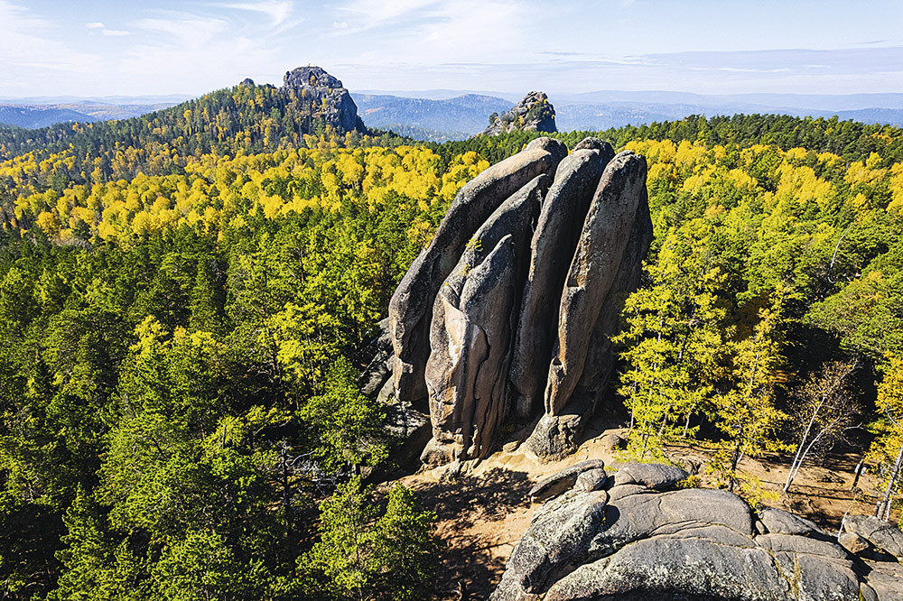 С северо-востока он практически примыкает к городу. Знаменит скалами, так называемыми сиенитовыми останцами, у каждой из которых свое название – Ермак, Дед, Бабка… Еще в XIX веке местные жители принялись покорять их вершины. Особенно преуспели ссыльнопоселенцы, устраивавшие тут тайные собрания.