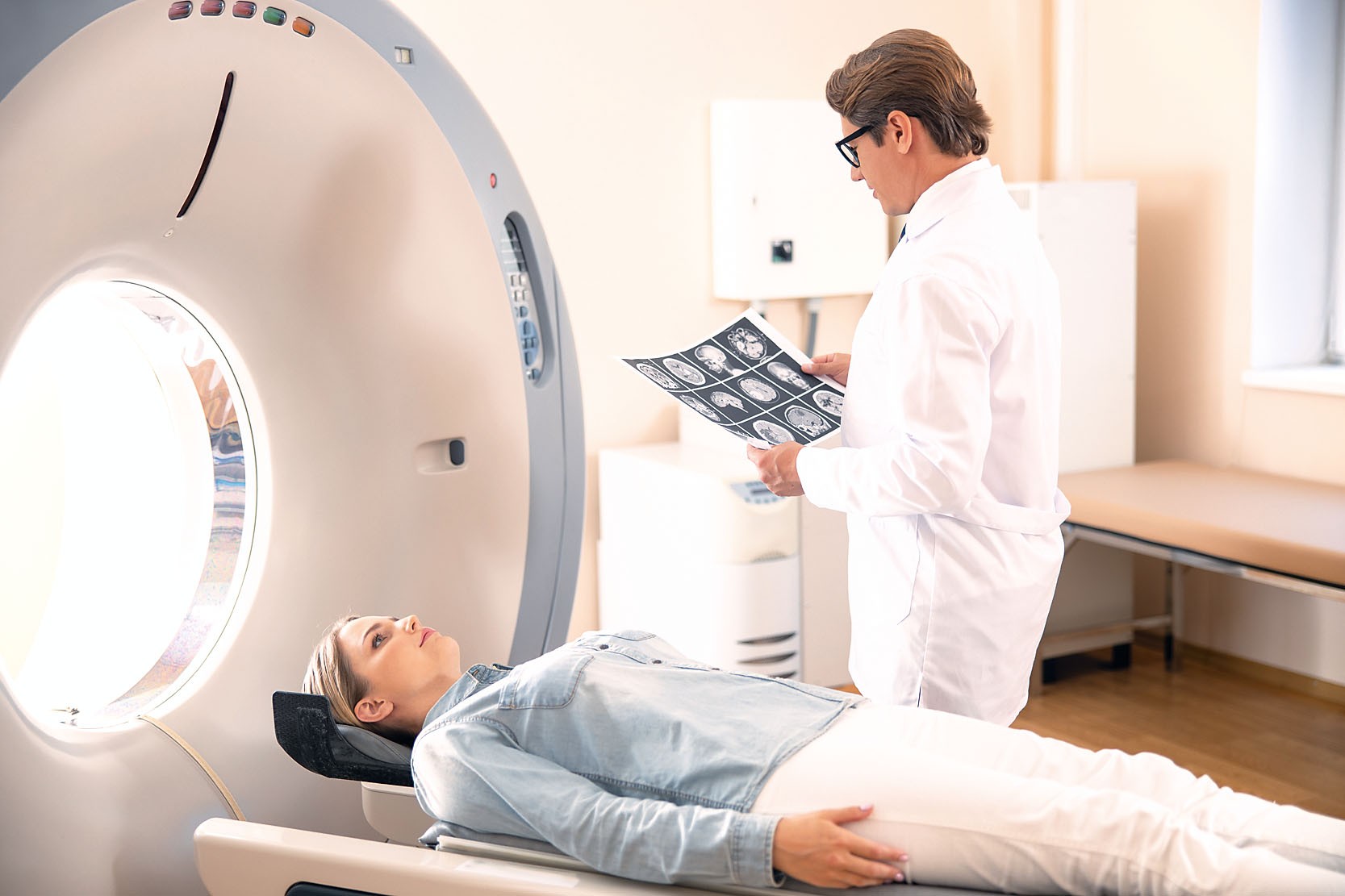 В отличие от КТ, у МРТ нет лучевой нагрузки. Человека помещают в аппарат в магнитное поле, где подаются радиочастотные сигналы. Диагностика может занимать от 10 минут до часа: время зависит от сложности исследования и объема зоны. Так же как и КТ, МРТ делает объемные картинки в 3D. МРТ назначают для исследования головного мозга, позвоночника, брюшной полости и суставов.