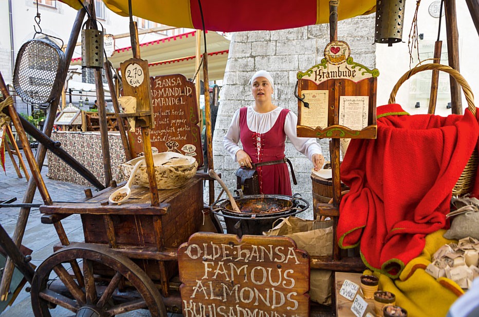 Ресторан Olde Hansa со средневековым антуражем! Зал освещается свечами, в полутьме ловко снуют официанты в костюмах и в башмаках с загнутыми носами. Раз-два, и вот уже на столе паштет из печенки, огурцы с медом, вяленая оленина, зайчатина с грибами...