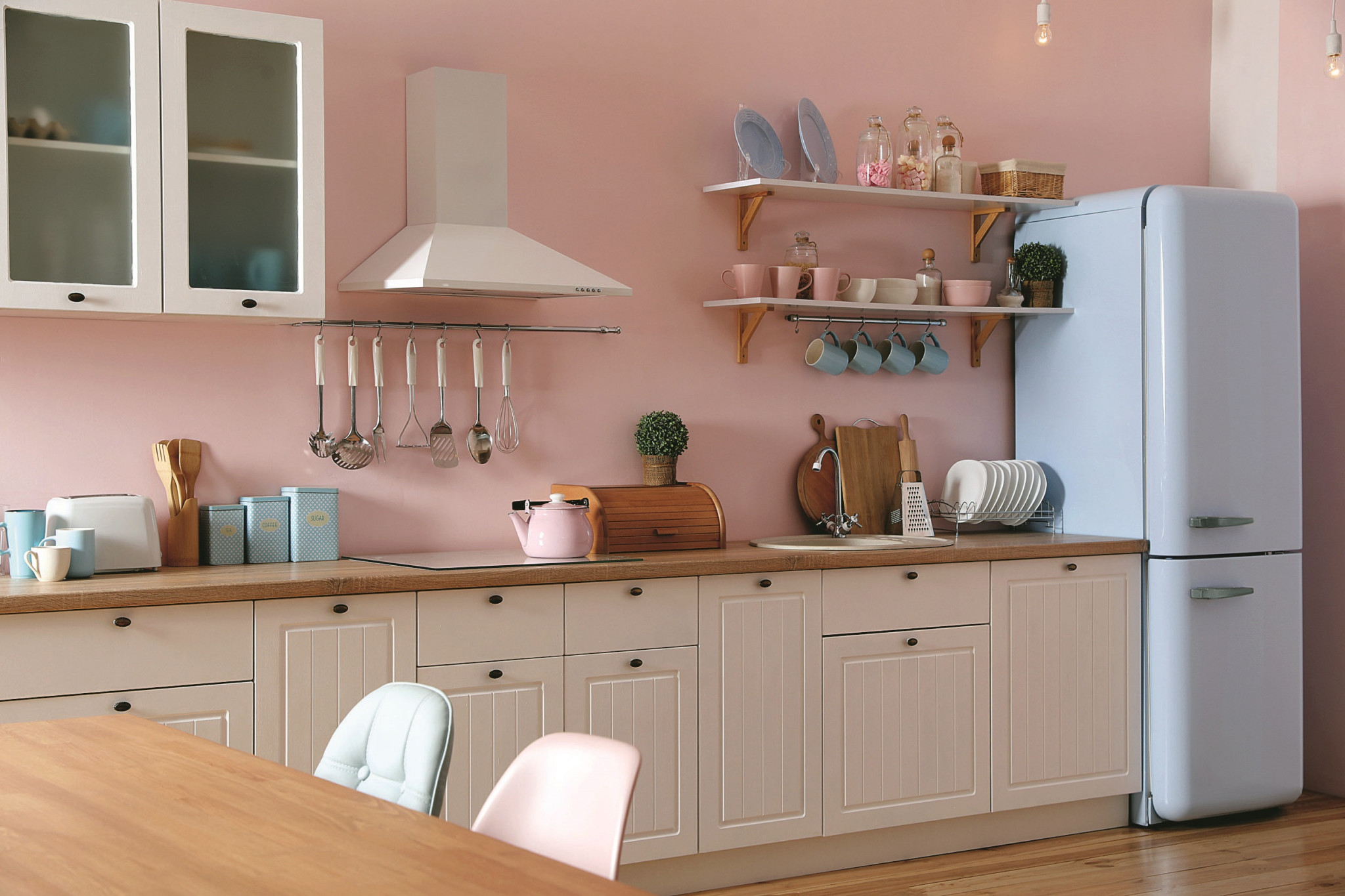 Первое, что бросается в глаза при входе на кухню. Если думаешь, что красная разделочная доска для мяса, желтая – для хлеба, а еще баночки со специями, разноцветные ножи, мелкая кухонная техника должны всегда быть под рукой, то ты права. Пусть они будут рядом, но скрыты от глаз в шкафу или ящике.