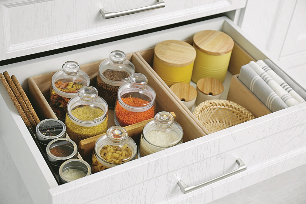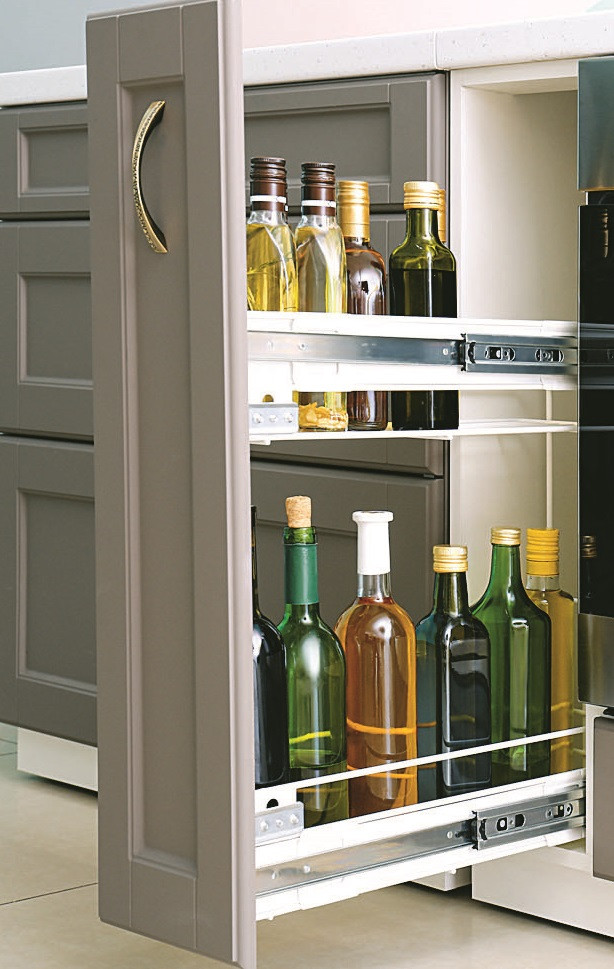 • Используй органайзеры, вращающиеся подносы. Это позволит систематизировать хранение, а также сделать его удобным.