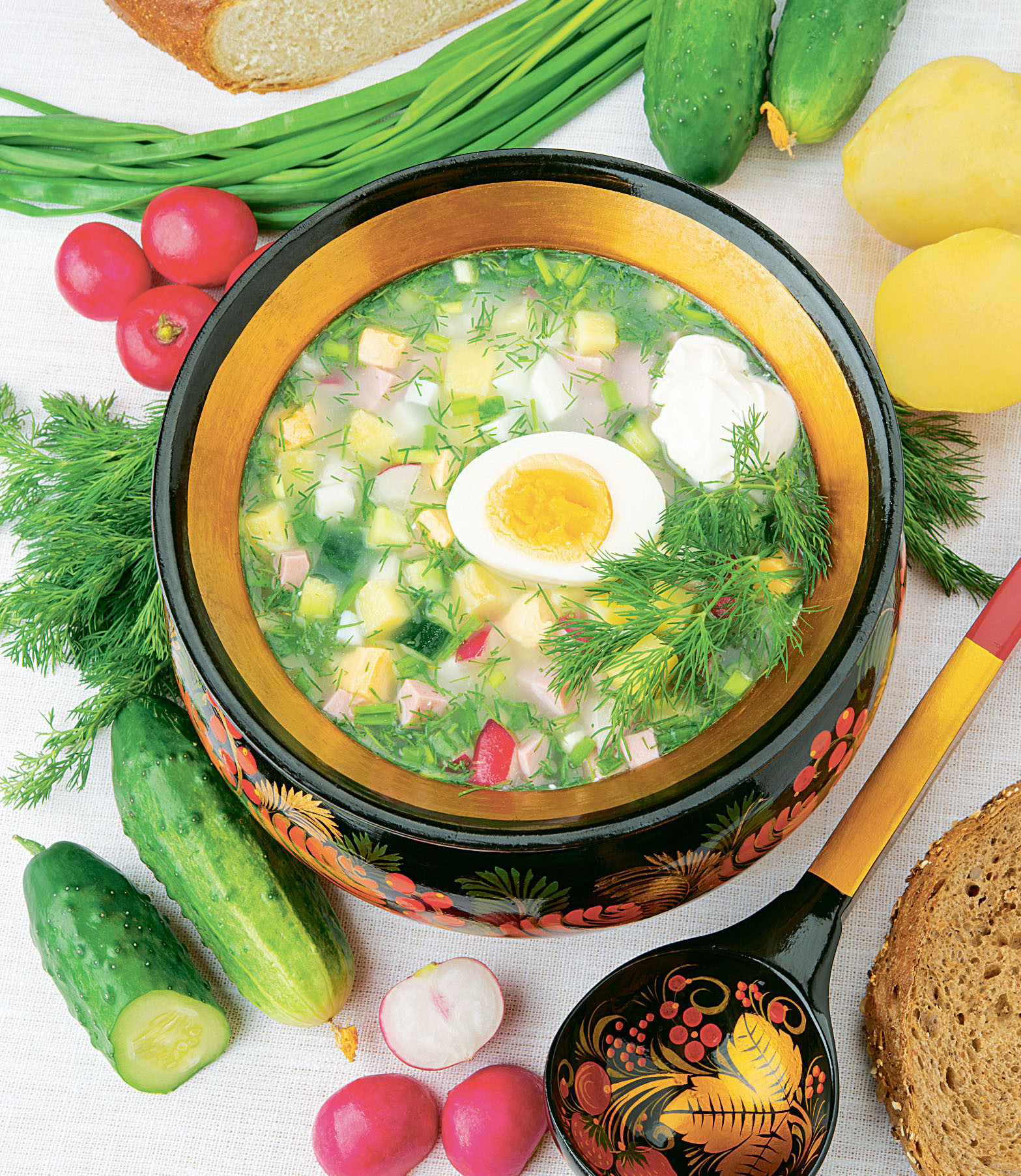 В крестьянском рационе эта нехитрая еда пришлась очень кстати и оказалась удобной во всех отношениях: блюдо готовилось из самых простых продуктов, изначально это были огурцы, укроп, зеленый лук, яйцо и сметана, позднее – картофель, отварное мясо, иногда редис.