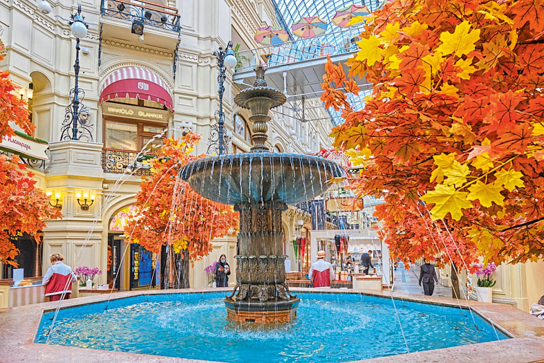 Место № 1 для фотосессий в главном универмаге страны – Центральный фонтан. Его оформление меняется несколько раз в сезон. Так, он принимал вид карусели, огромного дерева, в чаше плавали арбузы и дыни, а каждую зиму фонтан превращается в новогоднюю елку. На первом этаже магазина часто выставлены интересные экспонаты: от исторических костюмов до дизайнерских елок. Но самые популярные сюжеты фотографий – мостики и стеклянный купол ГУМа, посетители на фоне ретровитрин или с легендарным мороженым в вафельном стаканчике в руках.