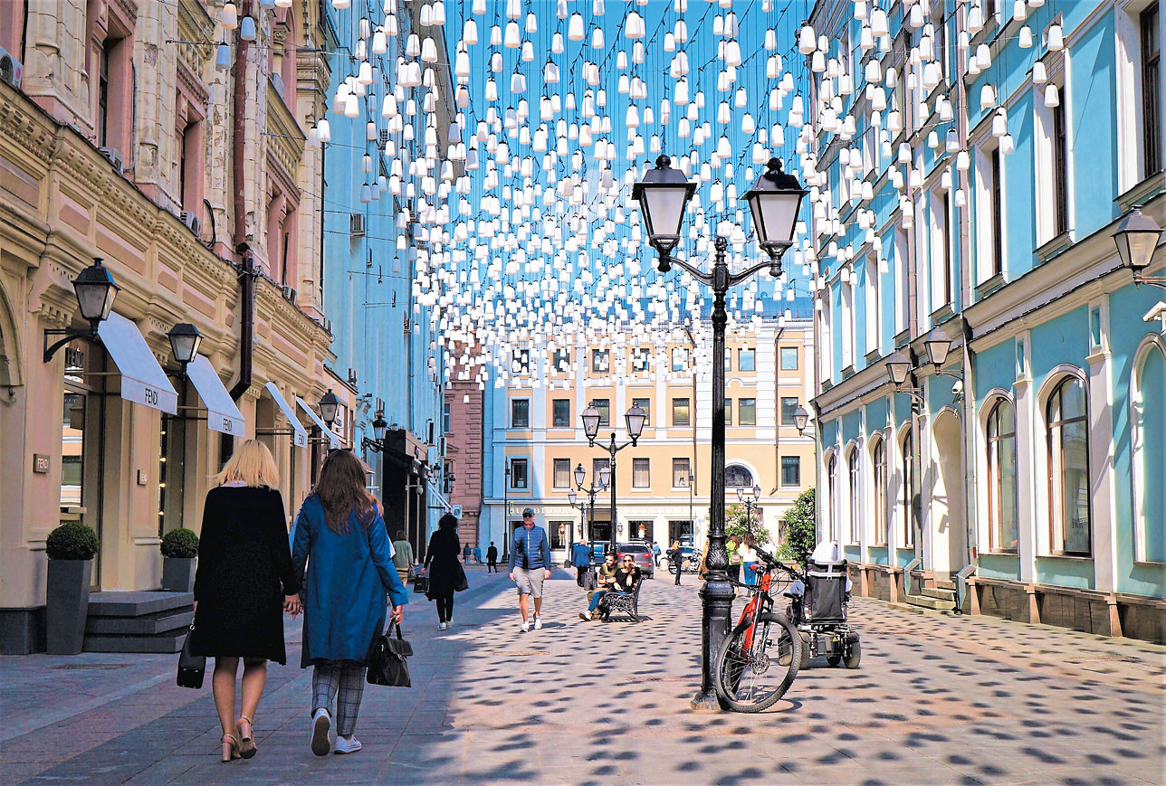Во время Чемпионата мира по футболу 2018 года на весь мир прославилась Никольская улица с ее яркой иллюминацией под названием «Звездное небо». Под ним болельщики праздновали победы своих команд и делали исторические снимки. Похожими световыми инсталляциями украшены еще несколько пешеходных улиц: Большая Дмитровка, Кузнецкий мост и Камергерский переулок. А в Столешниковом переулке между домами на тросовых растяжках круглый год висят световые фонарики (на фото).