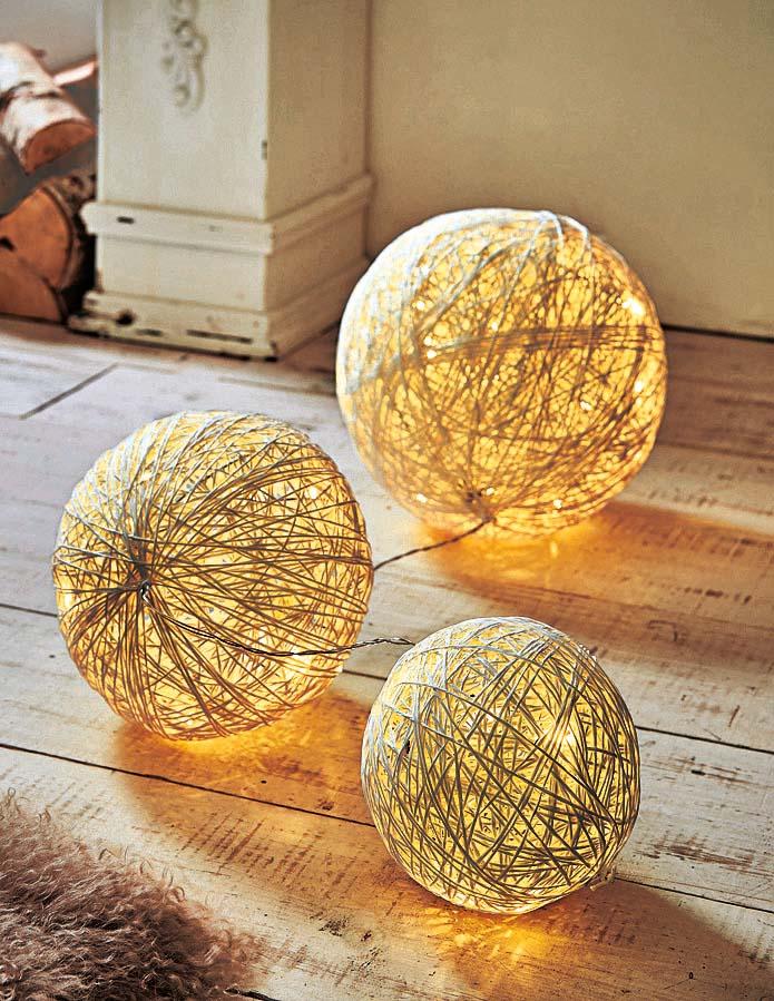 Возьми небольшую гирлянду и аккуратно вставь ее внутрь получившегося шара.