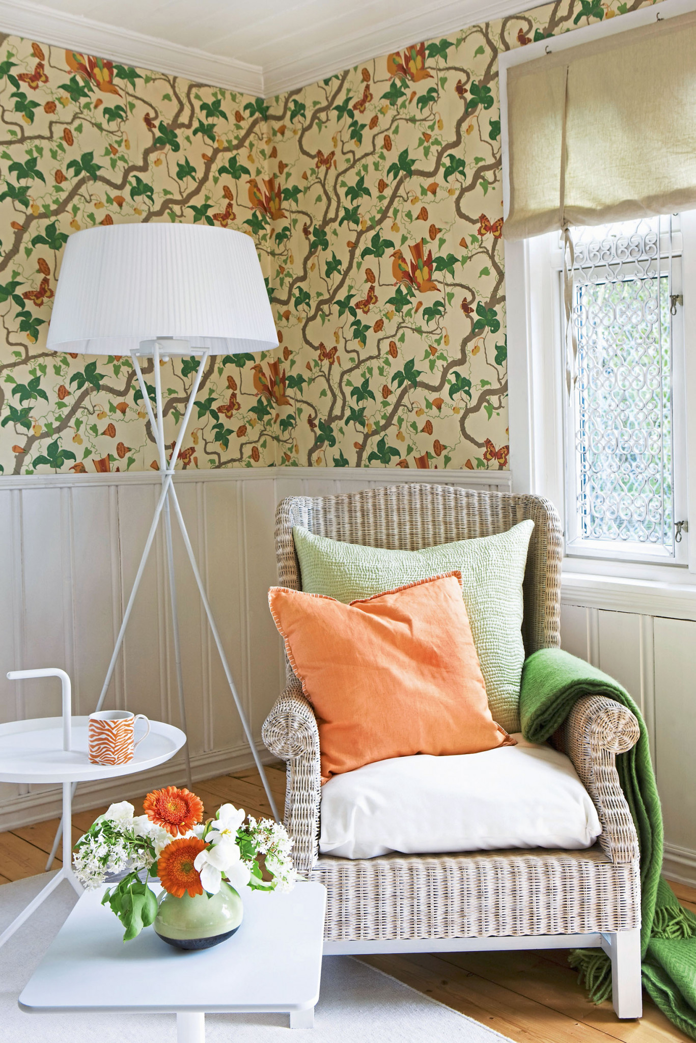 Массивные диваны с изогнутыми ножками, этажерки, пузатые комоды – все, что принято называть «бабушкиной мебелью», может выглядеть очень элегантно, если выдержано в едином стиле и содержится в идеальном порядке. Плетеные кресла из ротанга добавят игривости и уюта. В расстановке мебели не нужно стремиться к симметрии, главное – естественность и удобство.