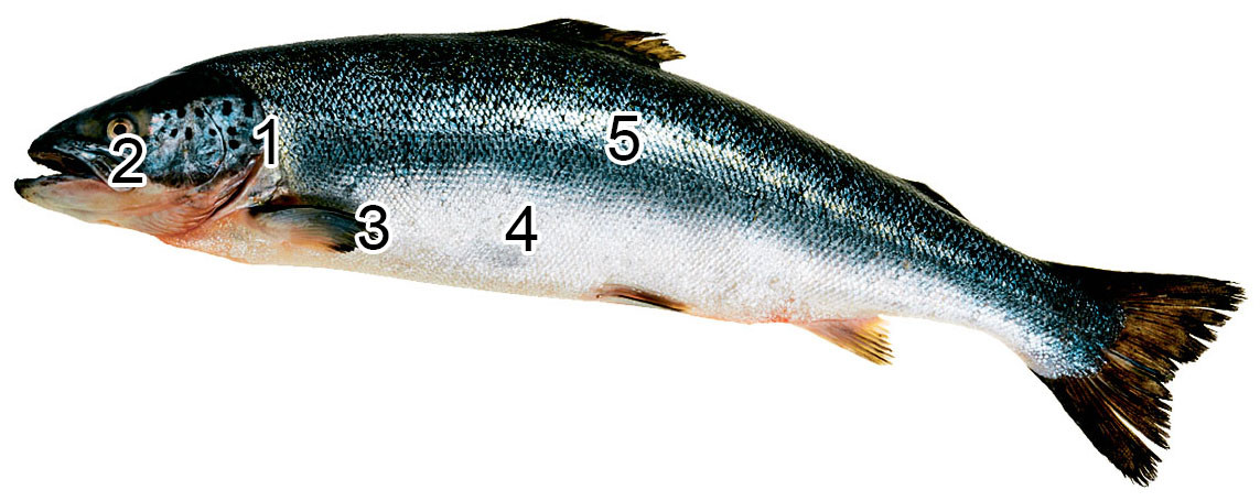 1. Жабры имеют розовую окраску и свежий запах огурца.
