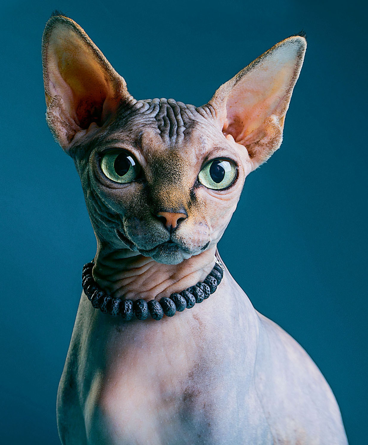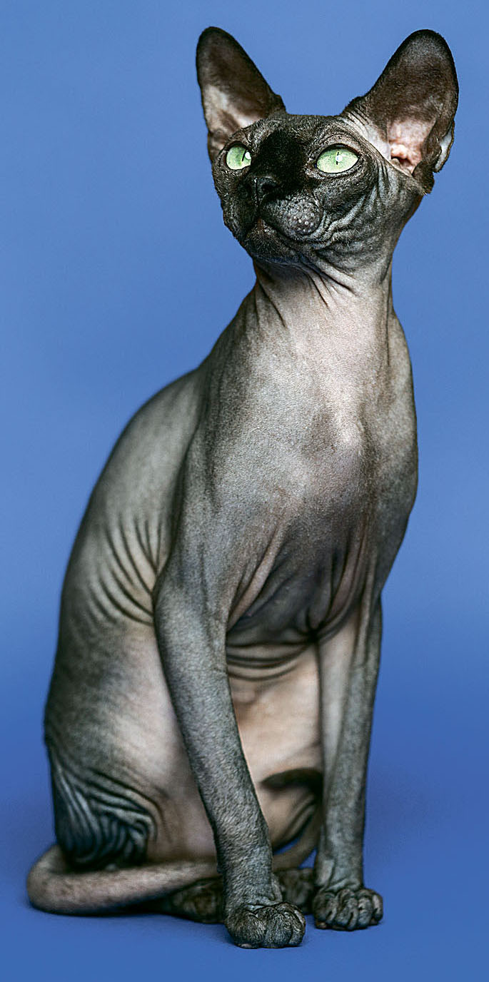 Кожа у лысых кошек нежная и эластичная, в отдельных местах собирается складочками, на ощупь очень теплая и приятная. Несмотря на голое тело и распространенную легенду, сфинксы не относятся к гипоаллергенным породам, так как человеческий организм реагирует на кожные выделения этих животных. Вес питомцев – от 2,5 до 5 кг, рост – до 30 см в холке. При благоприятных условия сфинксы живут 15–19 лет.