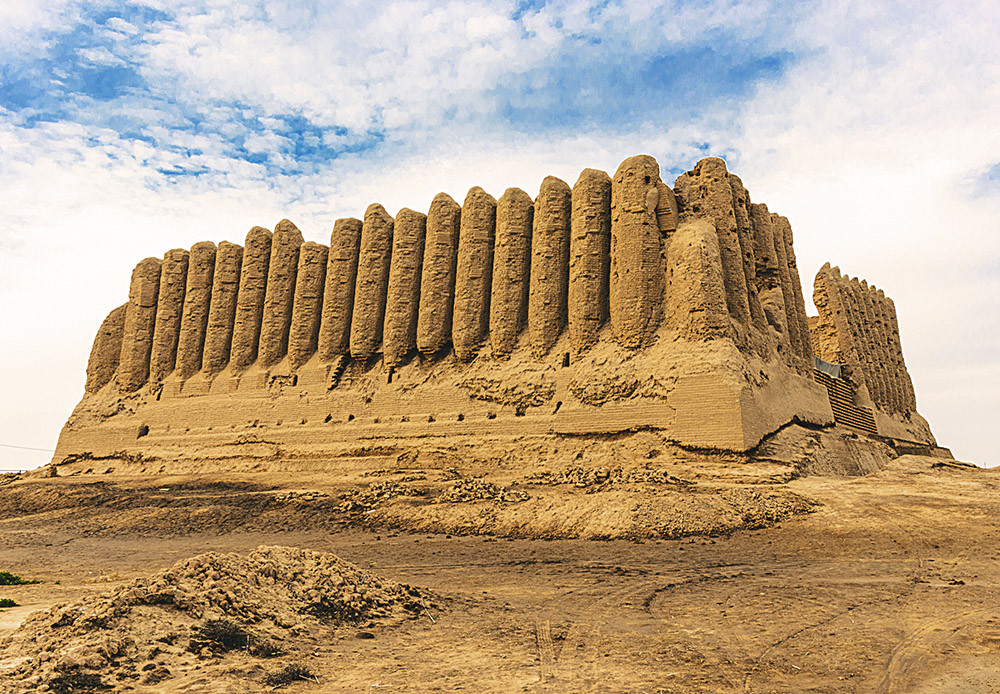 В нескольких часах езды от Ашхабада среди песков высятся удивительные древние сооружения. Руины Мерва, самого старого города Центральной Азии. Расцвета он достиг в XII столетии, будучи столицей империи Сульджуков. Считается, что это был крупнейший город своего времени. Тут проходил Великий Шелковый путь, двигались караваны на тысячи верблюдов. Местный виноград добирался до Египта, а туркменские дыни распространились на все обитаемые земли. Среди сооружений, сохранившихся до наших дней – гигантское снегохранилище. Можно сказать, холодильник 30 м в диаметре. Самый древний! Построен как термос: две толстые стены, между ними пространство для теплоизоляции. Зимой здание наполняли снегом, и этого хватало на год, чтобы каждый день подавать ко столу султана свежие продукты.