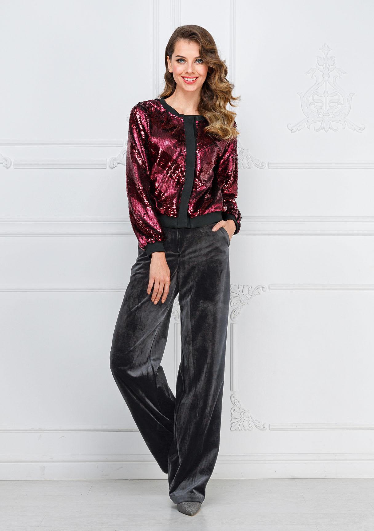 Изысканное решение для создания повседневных и праздничных образов. В первом случае носи мягкий костюм из бархата или велюра с однотонными футболками, водолазками и обувью на плоской подошве. Во втором – с блузками в бельевом стиле, топами в пайетках и шпильками. А самое приятное, что детали костюма можно носить по отдельности и сочетать с самыми разными вещами.