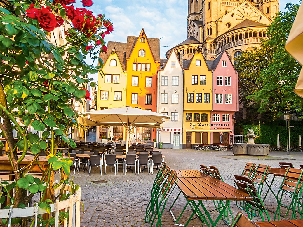 На фото – цветные дома на площади Рыбного рынка в Кёльне. Рядом с ними много кафешек, а в выходные работает рынок.