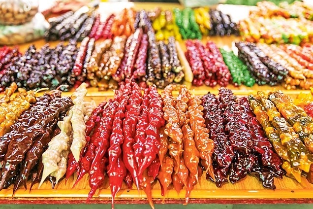 Разноцветную чурчхелу (гранатовая очень вкусная!), сухофрукты, орехи лучше покупать на Центральном рынке. Цены приятно удивляют!