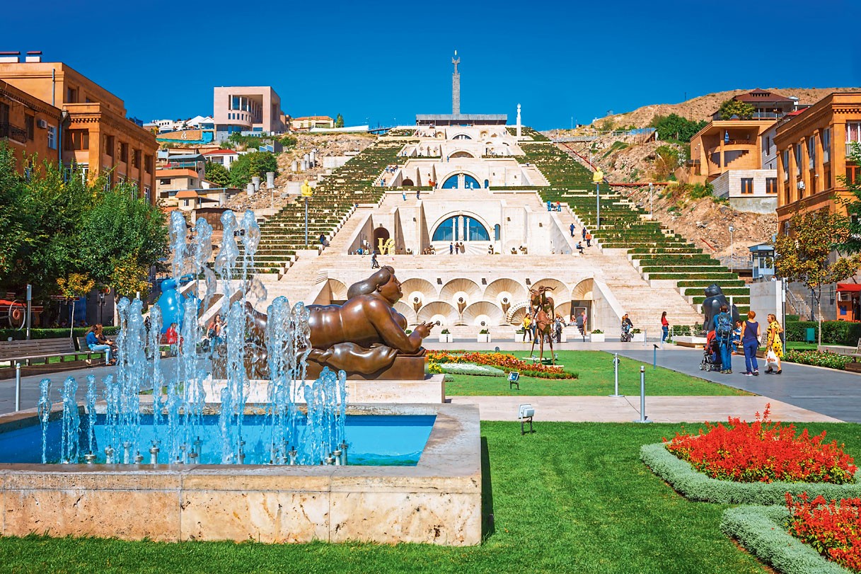 1. Для знакомства с Ереваном хватит и пары дней. Вполне можно успеть подняться на Каскад (на фото), сфотографироваться на площади Республики, посетить Национальную художественную галерею, где хранятся картины Айвазовского, и даже сходить в Оперный театр.