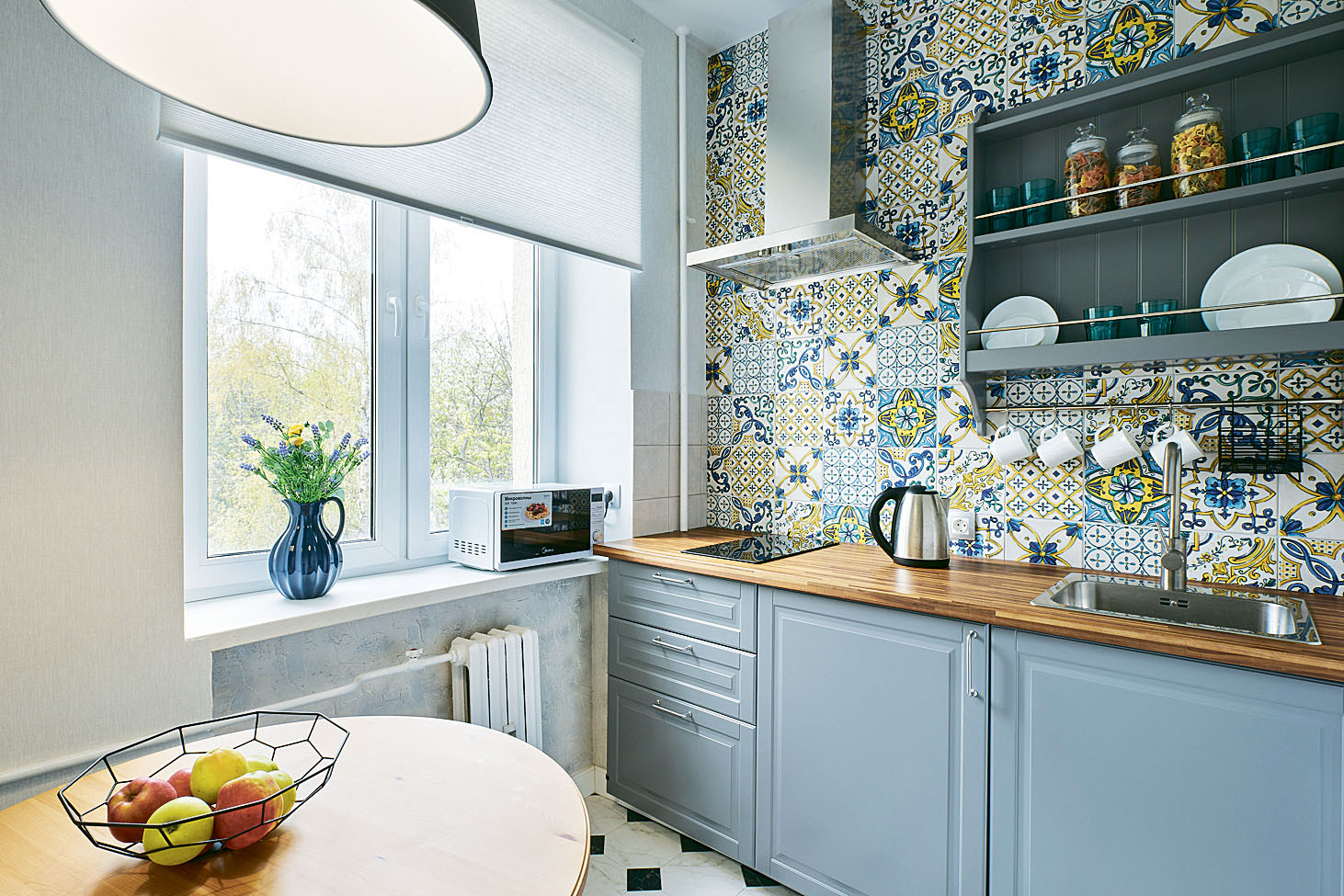 Также стоит повесить узкую настенную полку над окном – туда можно положить, например, праздничную посуду или столовые приборы, которыми редко пользуешься.