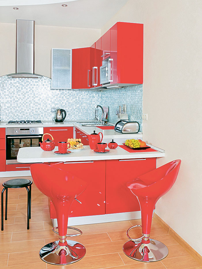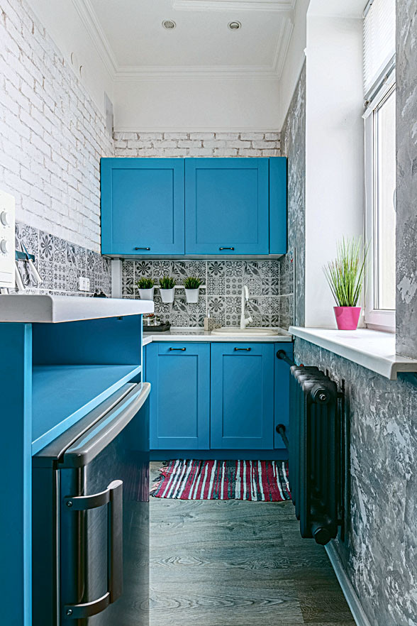 Самый простой способ сделать это – перекрасить стены. Светлые стены зрительно увеличат площадь маленькой кухни.