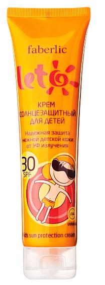 Солнцезащитный крем для детей Faberlic SPF 30 увеличивает содержание кислорода в коже, обеспечивая повышенную защиту от UV-лучей. Масло ши в составе формулы оказывает заживляющее и увлажняющее действия. Цена 259 руб.*