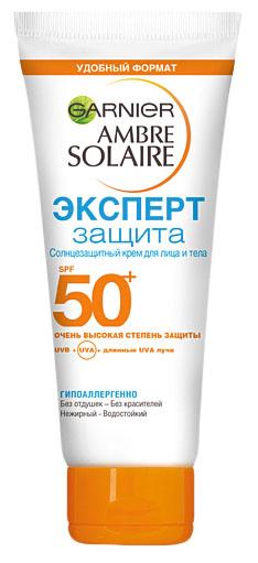 Солнцезащитный крем Garnier Ambre Solaire «Эксперт Защита» SPF 50 разработан для светлой кожи, чувствительной к солнечным лучам. Он не содержит красителей, отдушек и подходит для лица тела. Цена ок. 299 руб.*