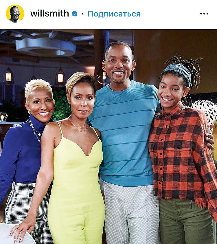 А Уиллу Смиту мы завидуем. Его теща (на фото крайняя слева) в свои 65 лет фору даст красавицам помоложе. Подтянута, на животе – идеальный пресс, на лице – минимум морщинок, стильная короткая стрижка. Эдриенной восхищается вся семья и берет с нее пример по части физподготовки и заботы о своем теле. Сам глава семейства, Уилл Смит, обожает своих девочек. В «Инстаграме (соцсеть признана в РФ экстремистской и запрещена)» часто выкладывает совместные фото дочери Уиллоу, жены и тещи. Пишет, что для него большая честь любить и заботиться о них.