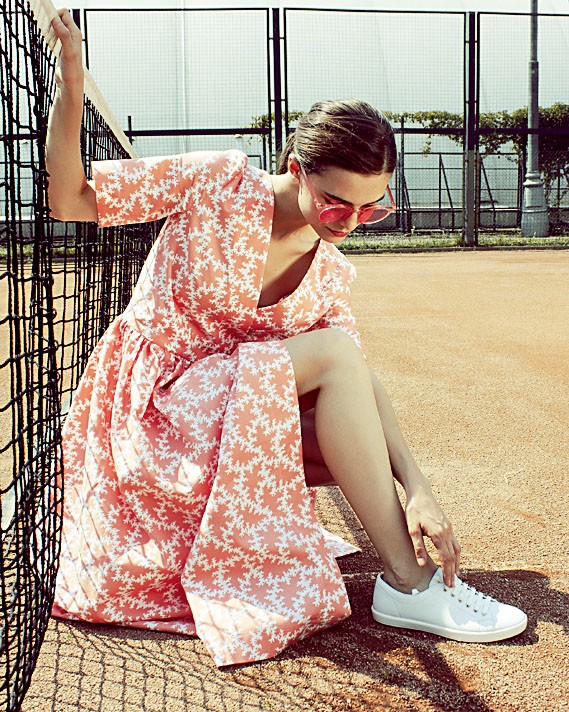 Практически любые! Но зависит от типа вашей фигуры: например, легкое платье с тяжелыми кроссовками подойдут хрупкой худой девушке, а на полной утяжелят образ. Если у вас есть лишний вес, выбирайте объемные юбки и подчеркивайте талию; в таком случае кроссовки помогут сделать образ более легким.