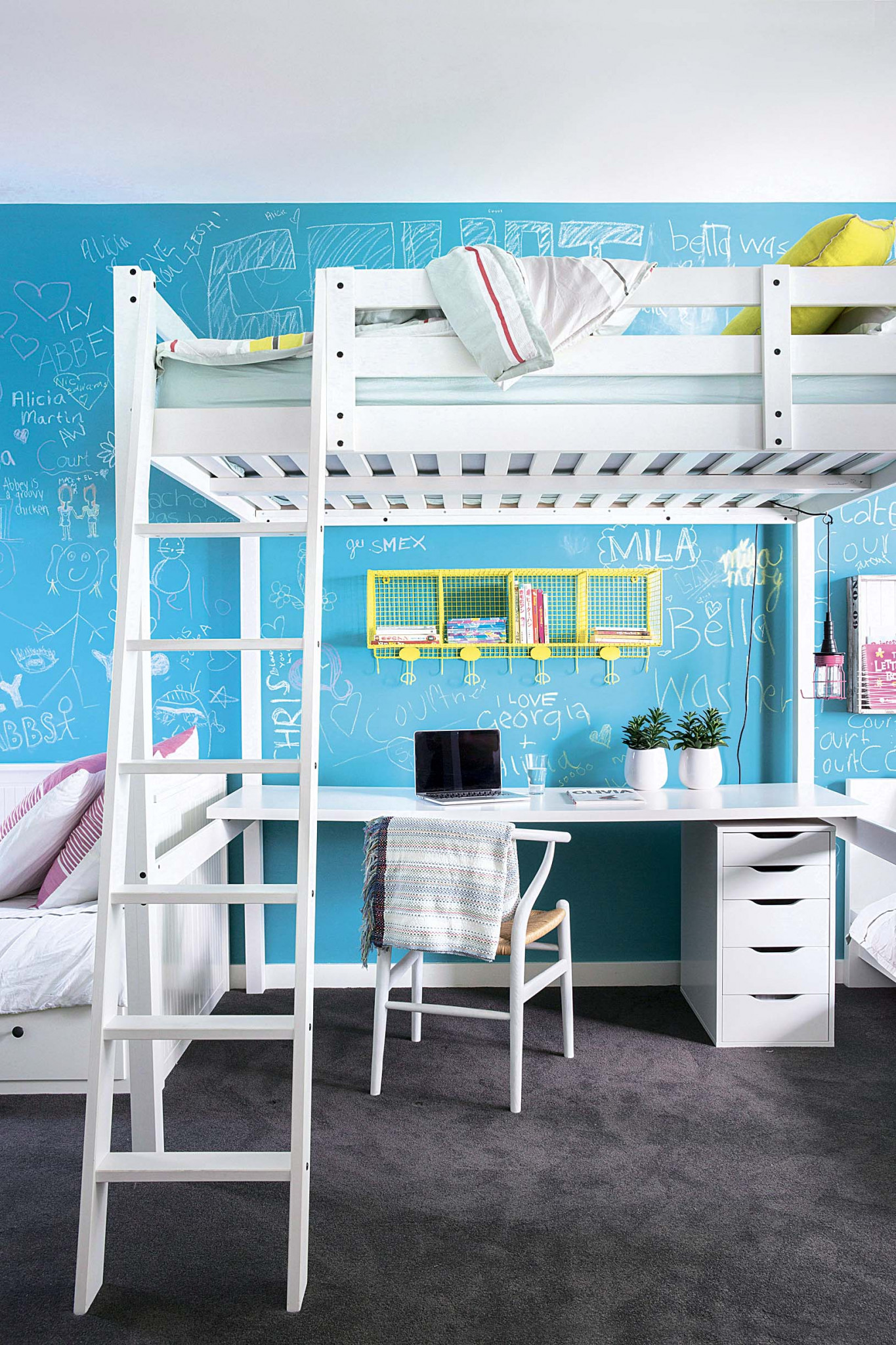 Двухъярусная модель, или кровать-чердак, в которой вместо нижнего спального места располагается письменный стол, – настоящее спасение для тех, кто хочет сэкономить пространство в детской комнате. Похожую идею можно реализовать и во взрослой спальне.