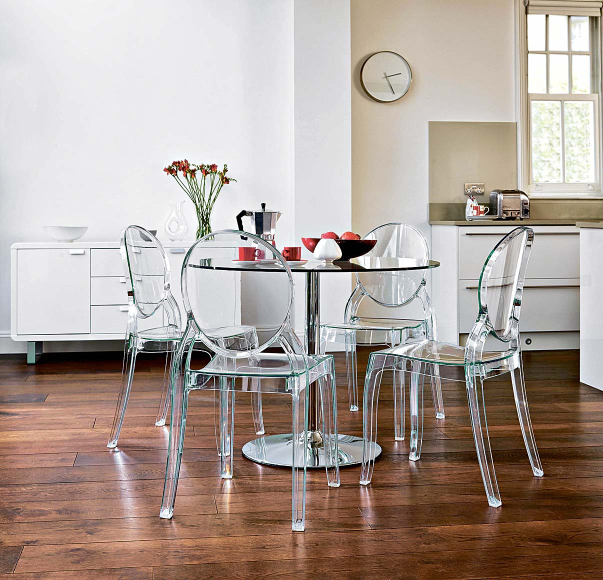 Прозрачные предметы мебели и модели с зеркальными поверхностями смотрятся менее громоздко: первые норовят «раствориться» в помещении, а вторые зрительно расширяют пространство за счет отражающего эффекта.