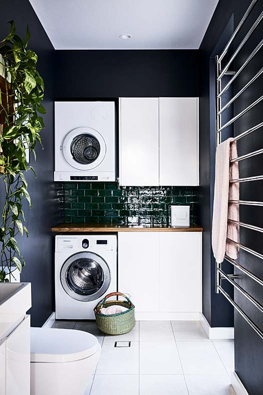 Ванная комната будет гораздо вместительнее, если разумно использовать стены, закрепив на них не только зеркала и полки, но и, как вариант, сушильную машину. Этот бытовой прибор еще только входит в наш обиход. К установке сушилки также есть строгие технические требования, поэтому лучше доверить это профессиональным сантехникам и электрикам.