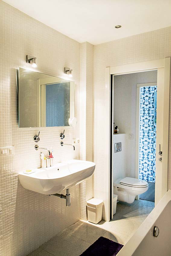 Ванна или душ, унитаз, стиральная машина, полочки – даже этот стандартный набор можно разместить креативно.