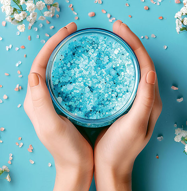 - МОРСКАЯ СОЛЬ используется в продуктах для банной линии и скрабах для эксфолиации. Она улучшает циркуляцию крови, выводит отеки и успокаивает кожу. Ванны с морской солью можно принимать даже тем, кто страдает от аутоиммунных кожных заболеваний, таких как псориаз, атопический и себорейный дерматит. Ценные минералы: цинк, йод, бром, селен успокаивающе действуют на дерматиты.