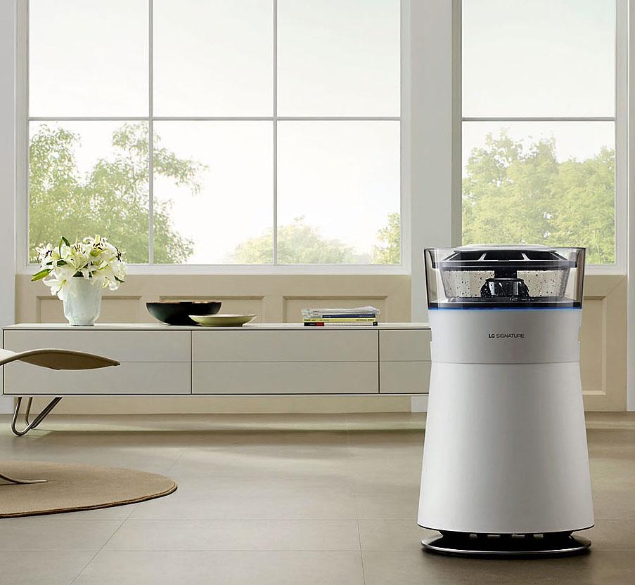Сделать воздух в доме чистым поможет климатический комплекс LG Signature. Современная технология Watering System использует для фильтрации загрязняющих веществ силу воды, при этом комфортный уровень влажности в помещении достигается очень быстро. Перед распылением в режиме «Увлажнение» вода стерилизуется ультрафиолетом, а при отключении – фильтры осушаются для предотвращения появления бактерий. Встроенный ионизатор насыщает пространство отрицательными ионами.