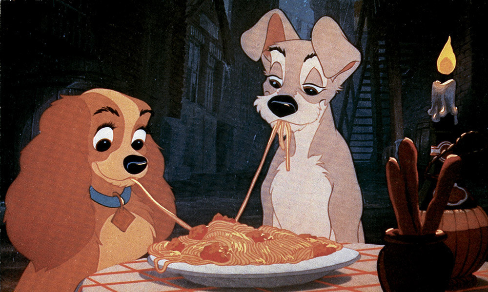 Романтический ужин на задворках итальянского ресторанчика «У Тони» и трогательный спагетти-поцелуй Леди и Бродяги из одноименного диснеевского мультика (1955 г.) вошли в историю. Эту пару сравнивают с такими влюбленными, как Скарлетт О’Хара и Рэтт Батлер в «Унесенных ветром» и Джеком Доусоном и Роуз в «Титанике».