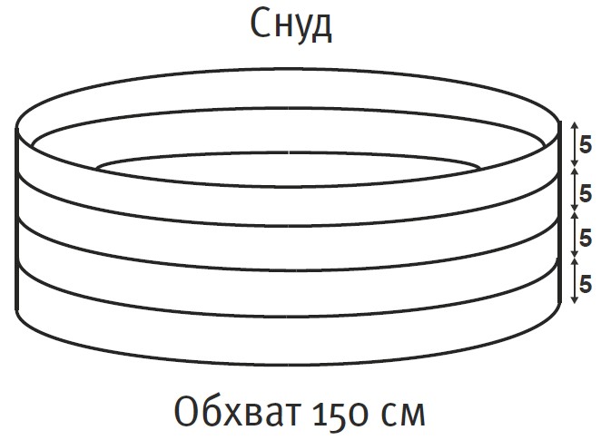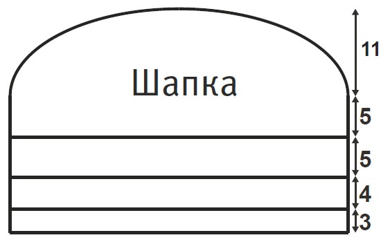 На спицы нитью 500 набрать 77 п. и вязать лицевой гладью, чередуя цвета нитей следующим образом: 8 рядов серо-коричневой нитью, 10 рядов светло-серой нитью, 12 рядов коралловой нитью, далее до конца вязать серо-коричневой нитью. Через 17 см в каждом 2-м ряду равномерно убавить 14 х 4 п., для этого связать первый ряд с убавками следующим образом: * 17 лиц., 2 п. провязать вместе лиц., от * постоянно повторять и закончить ряд 1 лиц.; последующие убавки выполнять над предыдущими. Затем уменьшить число петель вдвое, провязывая по 2 п. вместе лиц., и отложить оставшиеся петли. Обрезать нить, оставив длинный конец, протянуть конец нити в отложенные петли и стянуть; выполнить боковой шов.