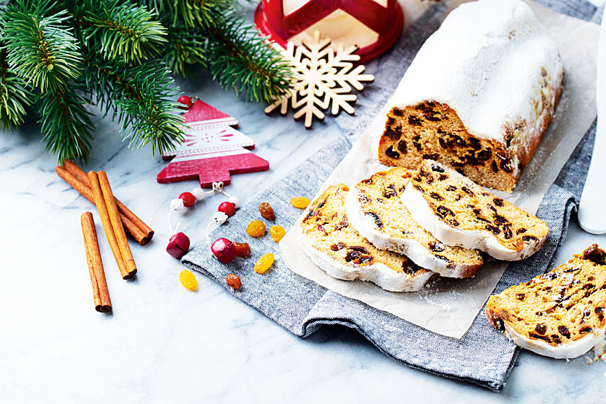Рождественский кекс с изюмом, орехами и цукатами, обсыпанный белоснежной пудрой, символизировал тогда младенца Христа в пеленах. Сегодня ни один праздничный стол в Германии не обходится без этого десерта.