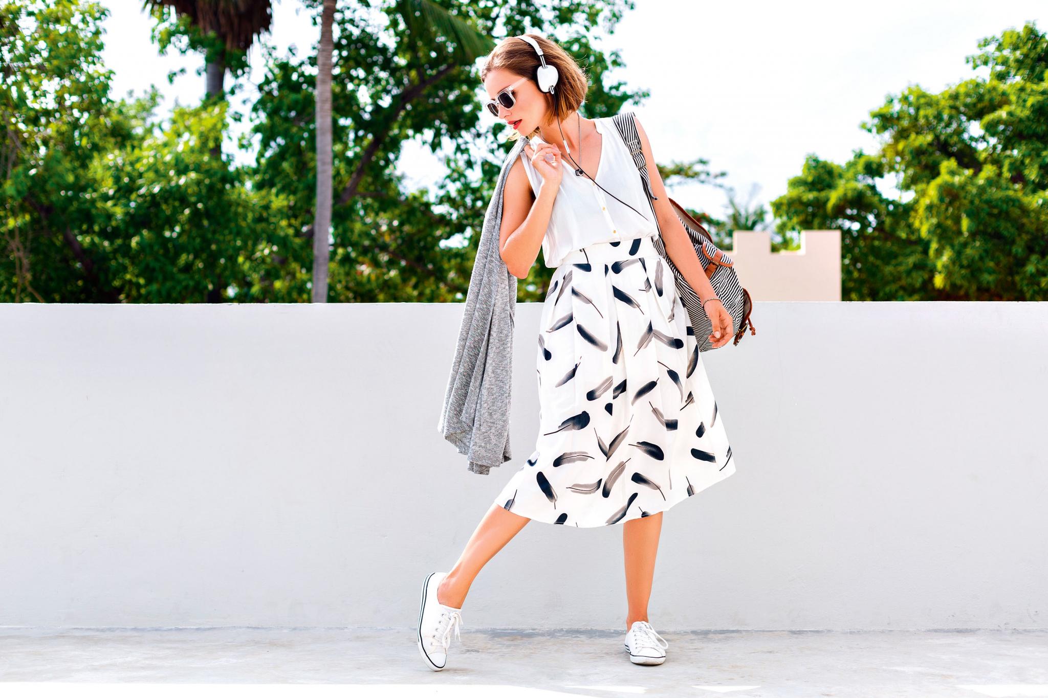 Кроссовки и слипоны классического белого цвета. А еще коротко обрезанные кеды – они идеально открывают щиколотку и подходят к образам как с брюками, так и с платьями. При этом неизменно молодят и добавляют динамичности любому комплекту.