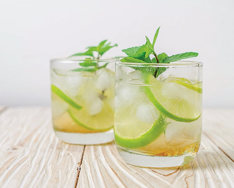 Приготовление: Кусочек имбиря (длиной примерно 3 см) нужно натереть на мелкой терке. Оставшийся имбирь нарезать ломтиками. Мяту залить 500 мл воды и довести до кипения. Добавить тертый имбирь и варить под крышкой примерно 10 минут. Огонь выключить, напиток оставить на 20 минут, затем процедить. В настой влить 500 мл горячей воды, сок лаймов и лимона. Добавить мед и перемешать. Разлить по бокалам, в каждый добавить нарезанный имбирь.