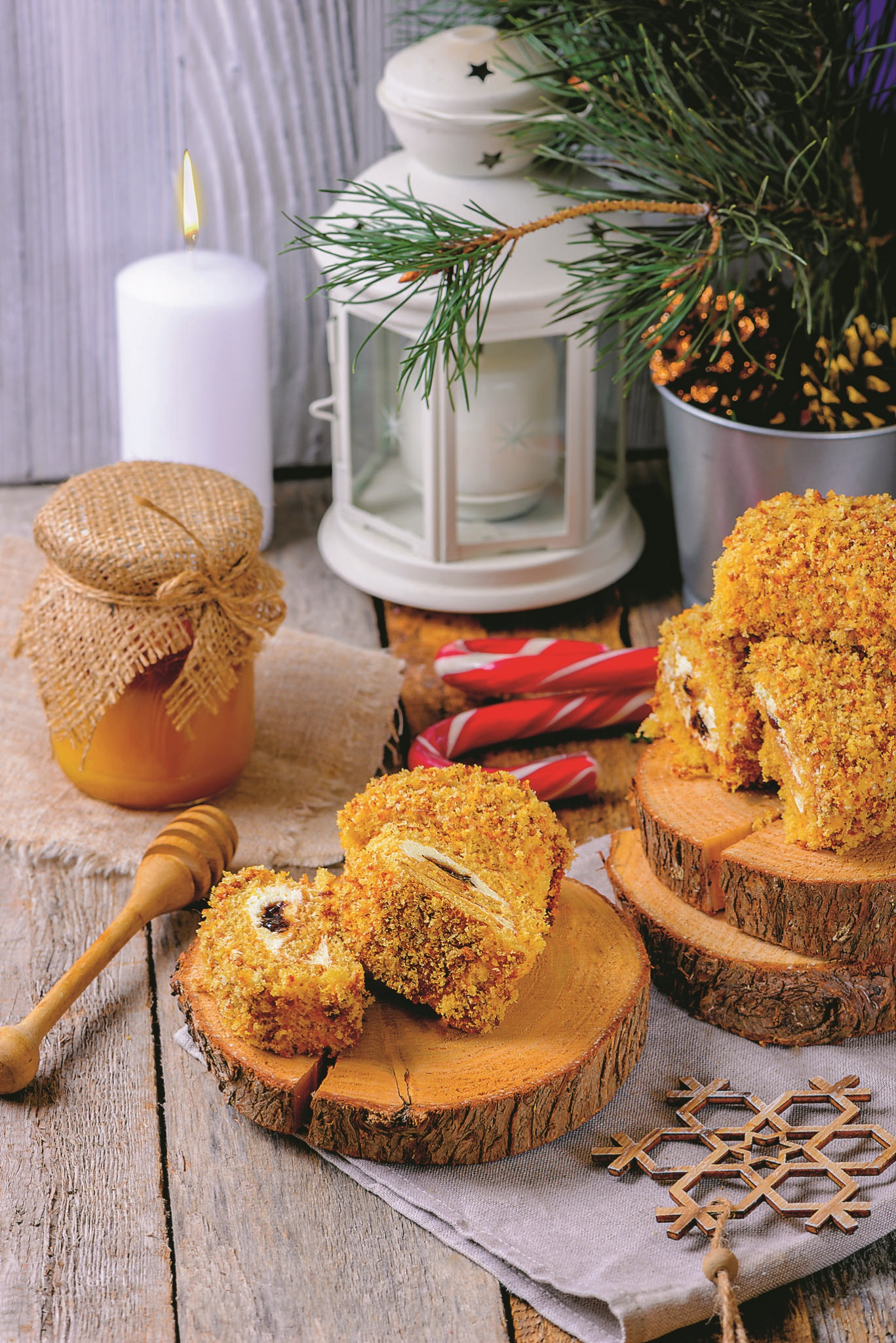 1Бисквитный рулет с медом и грецкими орехами